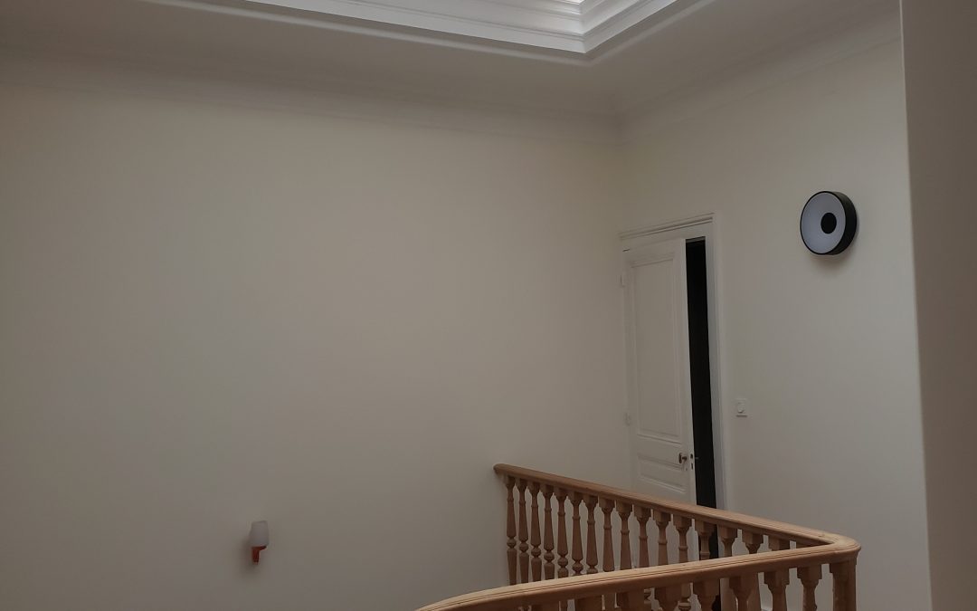 Les parties planes du plafond ont été réenduites et armées d’une grille de façadier afin de limiter la réapparition de désordre.